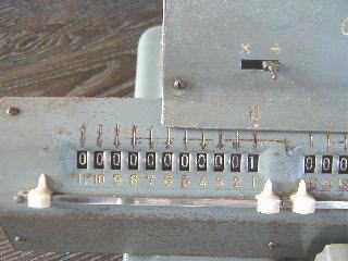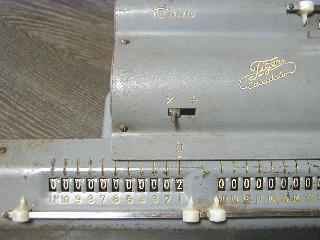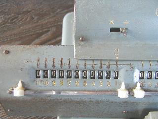 今度は、 @加・減算ハンドルを「除算・減算」方向に 1回まわすと、 Cハンドル回転数表示部に「−1」され、 カウントダウンして「2」になります。 |