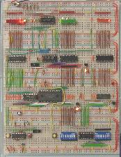 | モトローラのMC14500Bという1ビットCMOSマイクロプロセッサです。 1ビットで何ができるのかと思いますが、「I.C.U」(インダストリアル・コントロール・ユニット)としてPLC(プログラマブル・ロジック・コントローラ)の主な構成要素を1つのICで実現したもので、制御用に作られたました。 主な特徴は、 電源:3〜18V 処理データ長:1ビット 命令長:4ビット(16種類) クロック:外付け抵抗で1MHz程度まで インプットイネーブルレジスタ:入力DーFF アウトプットイネーブルレジスタ:出力D−FF RR(リザルトレジスタ):1ビットアキュムレータ などで、プログラムカウンタ、ワーキングレジスタ、スタックポインタなどはありません。 |