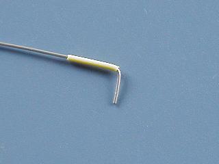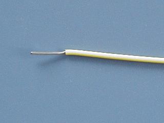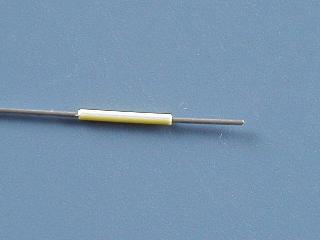 先ほど抜いたジャンプワイヤーの芯線に、切ったビニール被覆を通します。 |